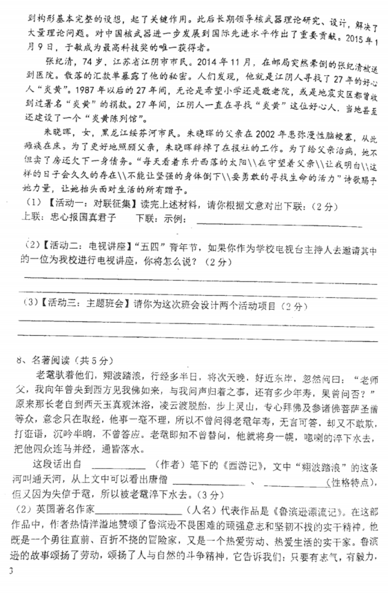 2017.10.28长沙湘郡郡维小升初语文试卷(3)