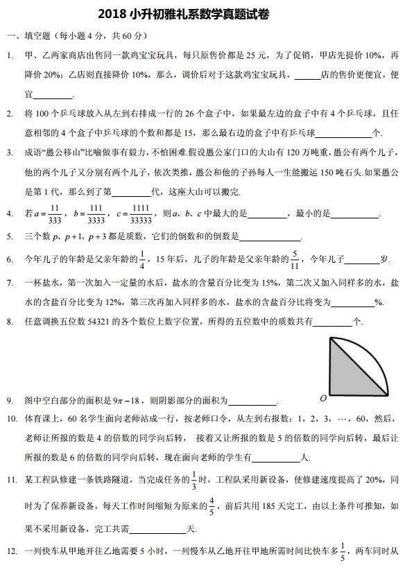 2018年长沙中雅培粹小升初数学试卷