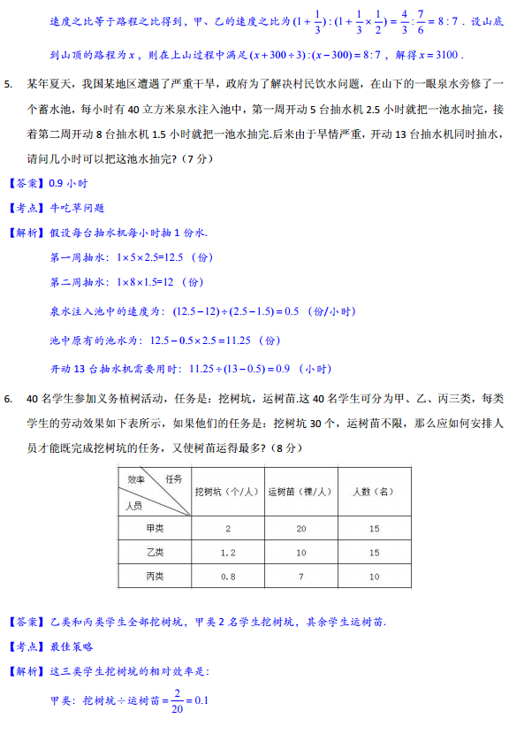 小学1-6年级奥数类型例题讲解整理汇总