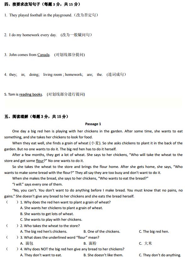 小学1-6年级语数英期末试题整理汇总