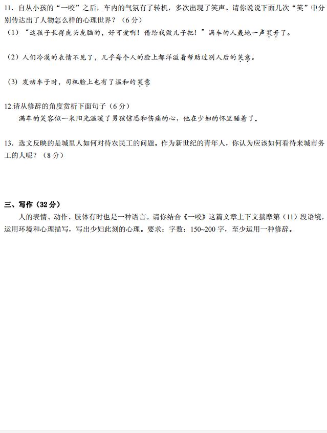 2017.11.4长沙中雅培粹小升初语文试卷(4)