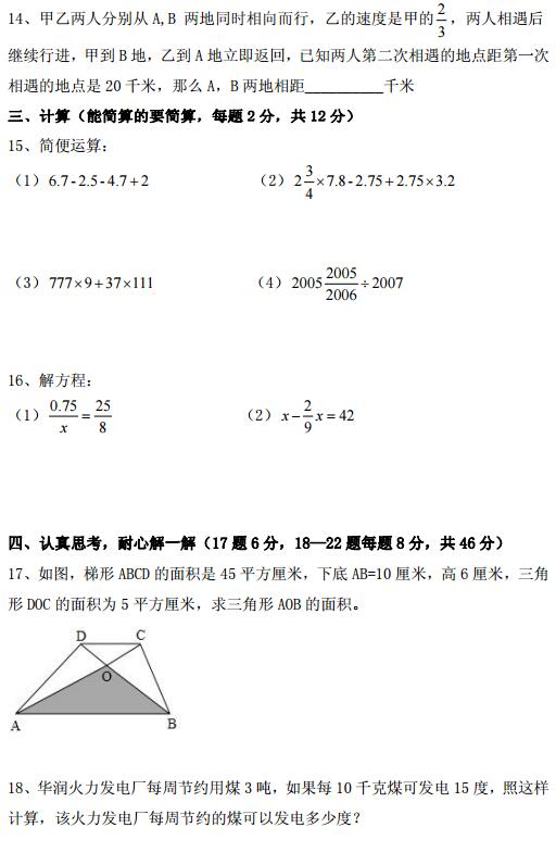 2017年长沙青竹湖湘一小升初数学试卷(3)