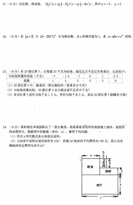 2017年秋长沙雅礼系初一期中联考数学试卷(3)