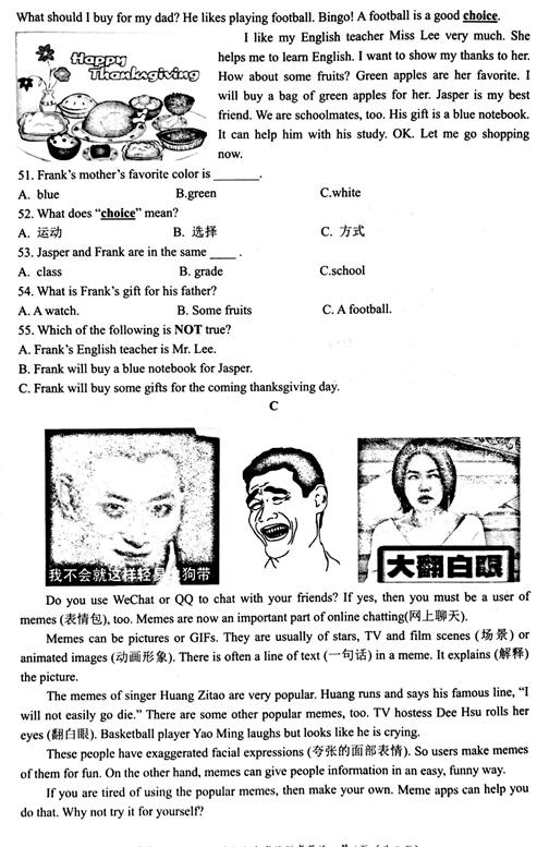 2017年秋长沙雅礼系初一期中联考英语试卷(6)