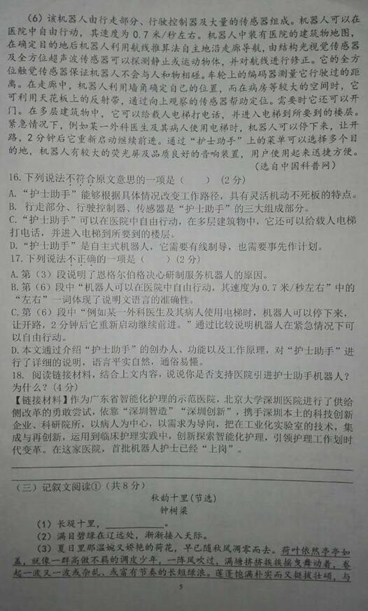 2017年秋长沙雅礼系初一期中联考语文试卷(5)