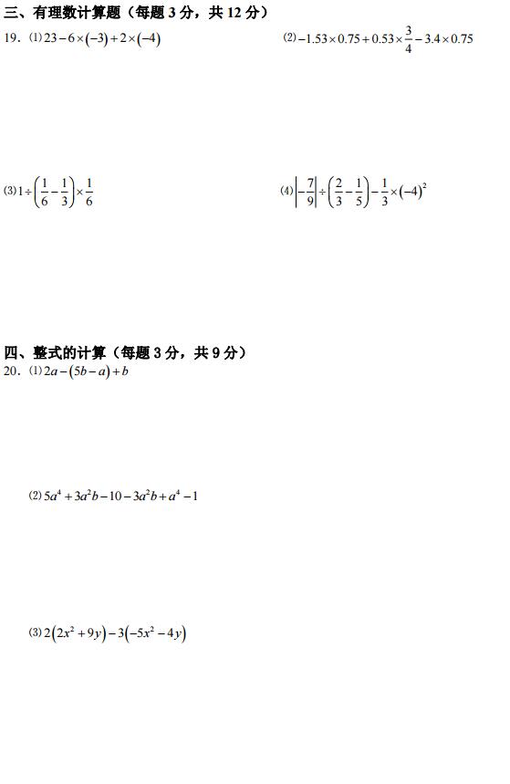 2017年秋长沙长郡系初一期中联考数学试卷(3)