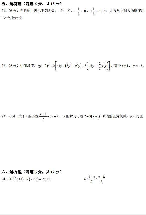 2017年秋长沙长郡系初一期中联考数学试卷(4)