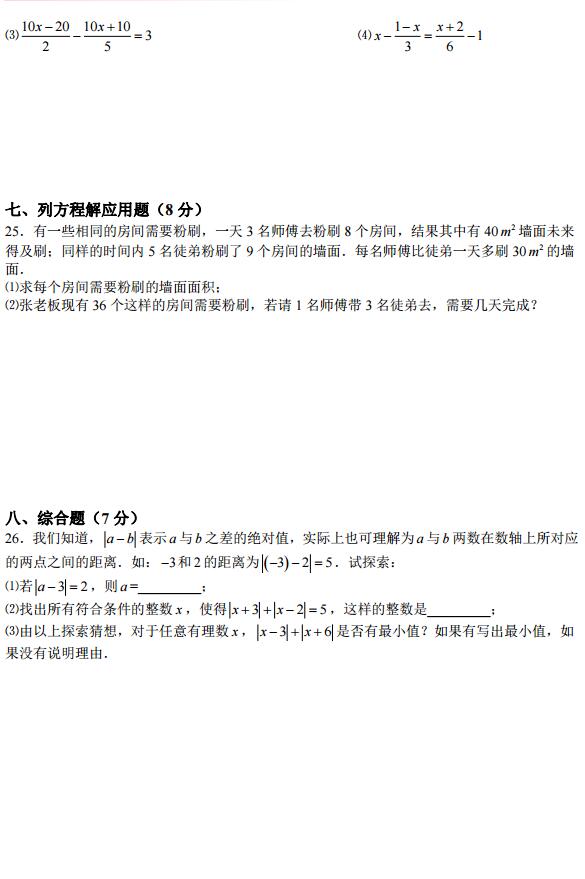 2017年秋长沙长郡系初一期中联考数学试卷(5)