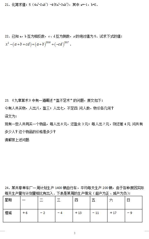 2017年秋长沙明德系初一期中联考数学试卷(3)