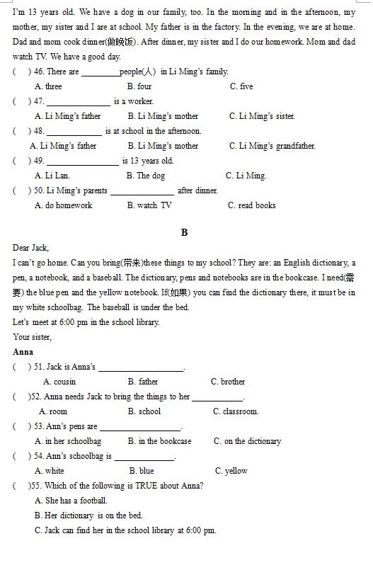2017年秋长沙明德系初一期中联考英语试卷(5)