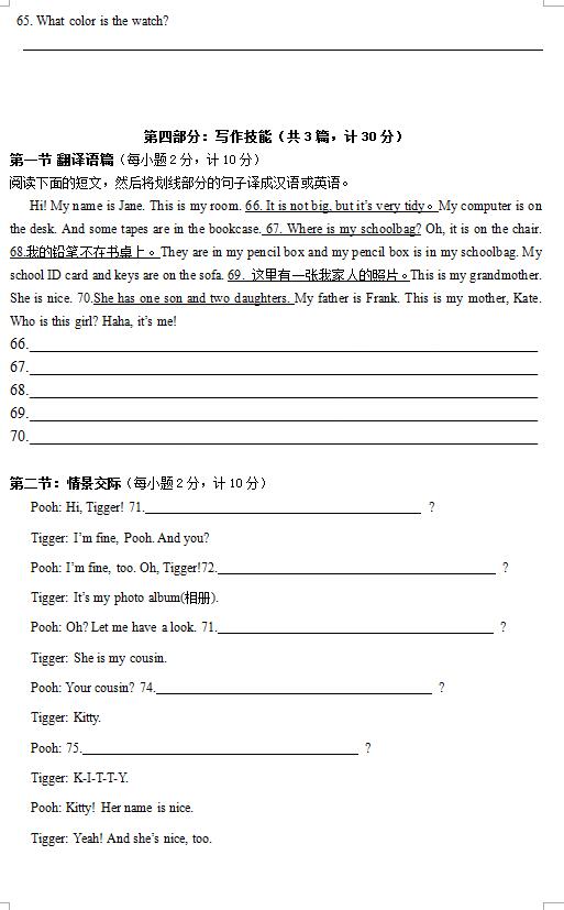 2017年秋长沙明德系初一期中联考英语试卷(7)