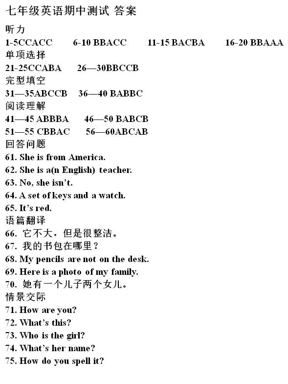 2017年秋长沙明德系初一期中联考英语试卷答案