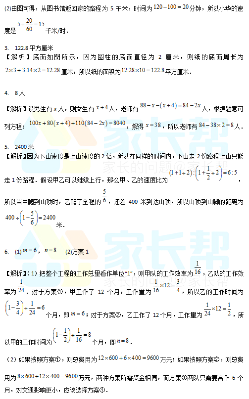 2017年长沙湘郡金海小升初数学试卷答案(3)