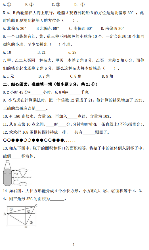 2017.11.4长沙青竹湖湘一小升初数学试卷(2)