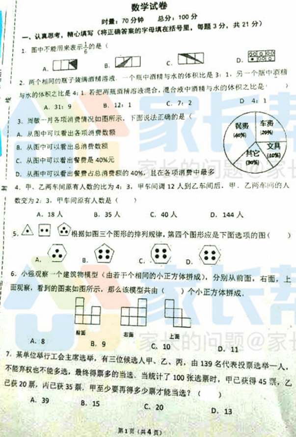 2017.11.2长沙青竹湖湘一小升初数学试卷