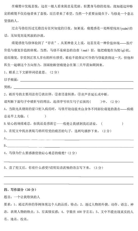2017.12.3长沙麓山外国语小升初语文试卷(2)