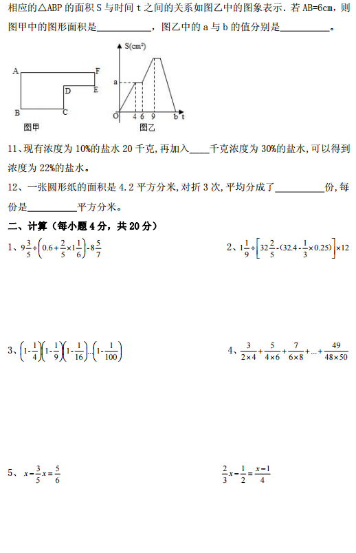 2017.12.14长郡培粹小升初数学试卷(2)
