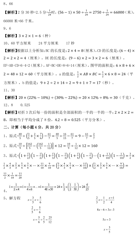 2017.12.14长郡培粹小升初数学试卷答案(2)