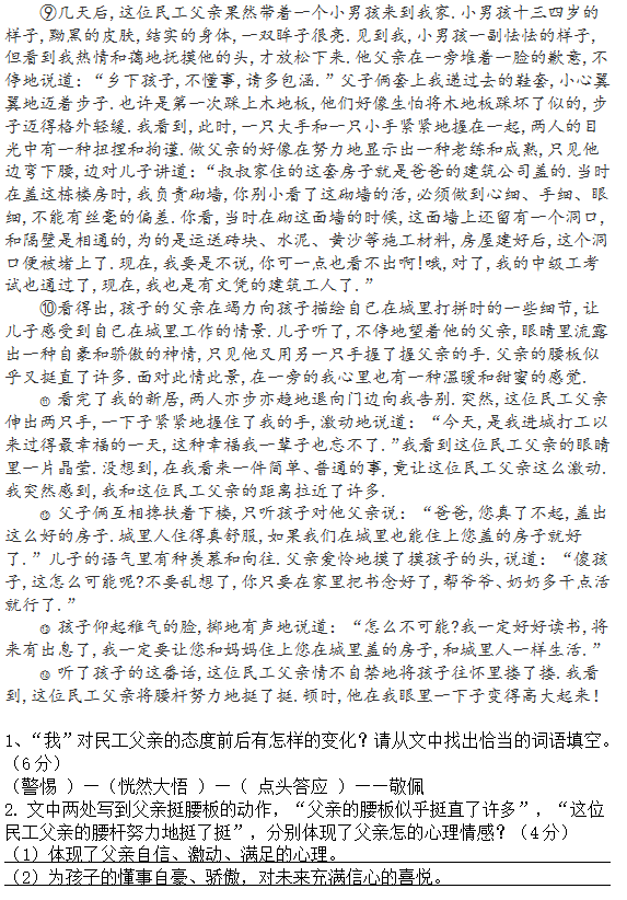 2018年1月7日青竹湖湘一语文试题及答案(3)
