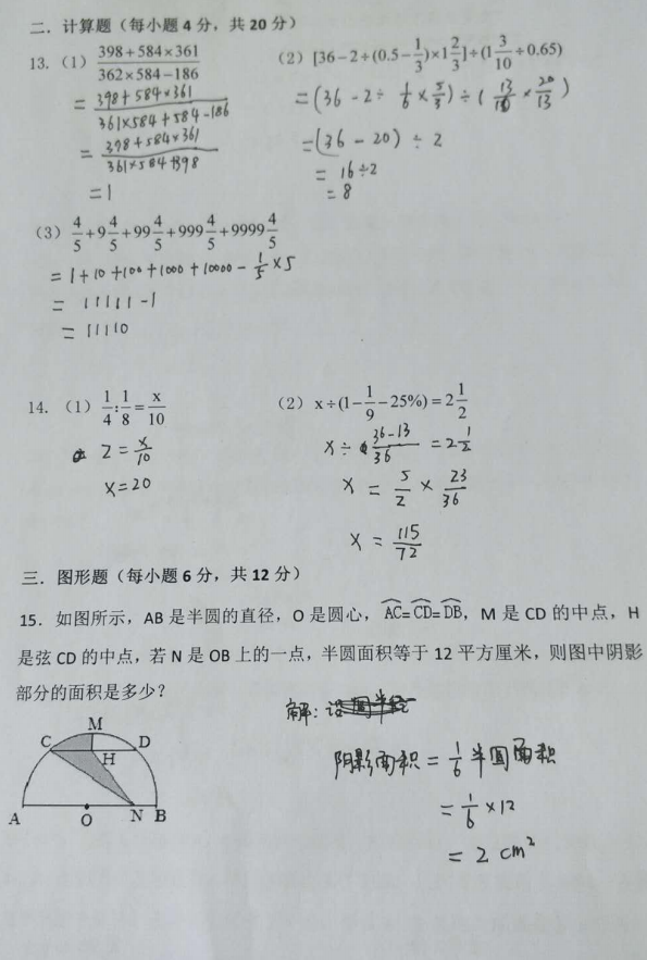 2018.1.13长郡培粹小升初数学试卷答案(2)