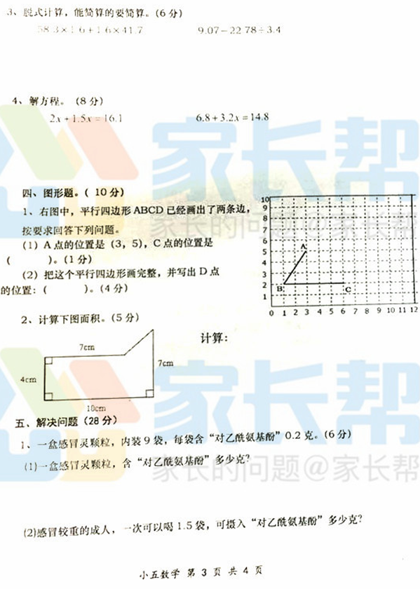 2017学年长沙长沙县五年级上期末数学试卷(3)