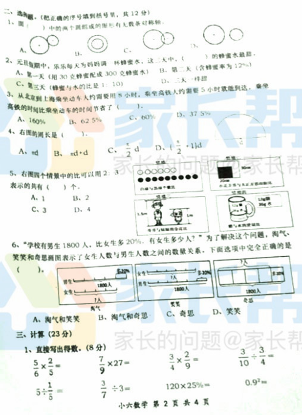 2017学年长沙长沙县六年级上期末数学试卷(2)