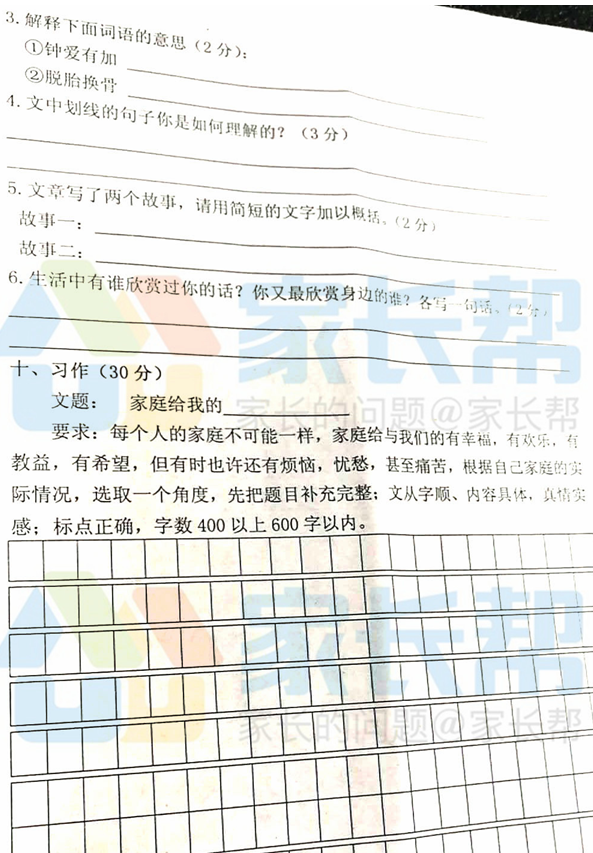 2017学年长沙开福区六年级上期末语文试卷(5)
