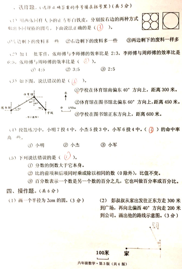 2017学年长沙雨花区六年级上期末数学试卷答案(3)