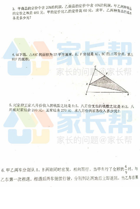 2018.2.27长沙中雅培粹小升初数学试卷(3)
