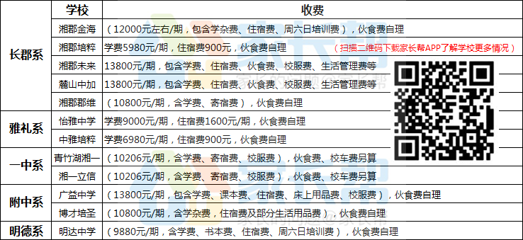 ③中雅和长培作为公益性民办,收费比其他民办低些,但学校硬和服务件不及其他民办。其他民办除广益学费涨幅较大,目前收费差别不是很大。值得推荐的是,湘郡金海和明德达材的收费里面包括了学校周六日培训的费用,家长不用再额外让孩子去外面机构培训,会省下一笔不小的开支。这两校收费性价比较高;