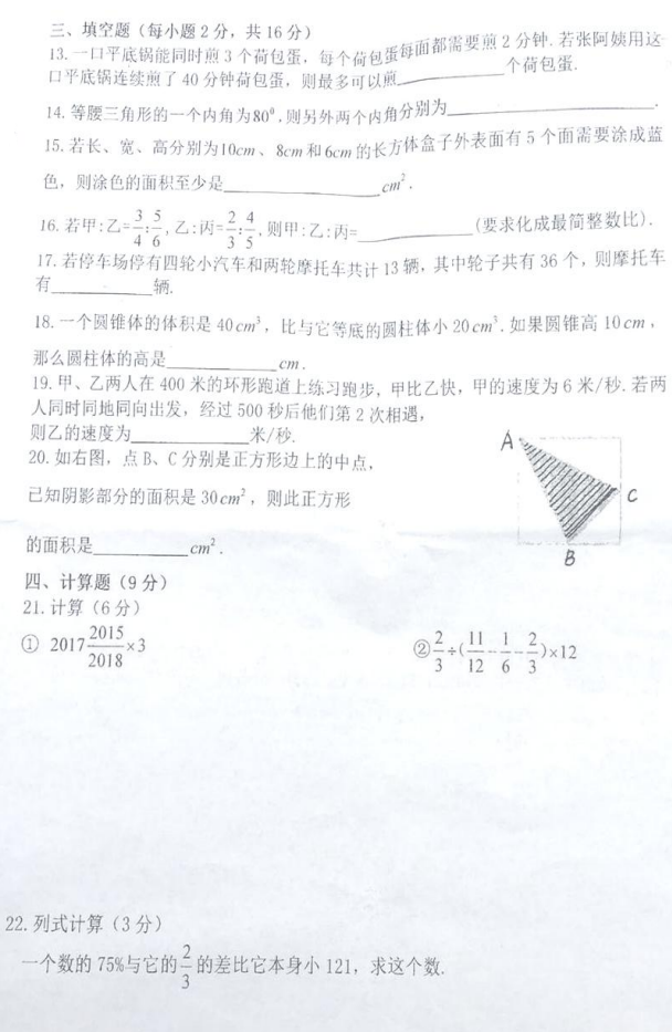 2018年湘潭江声小升初复试数学试卷(一)(2)