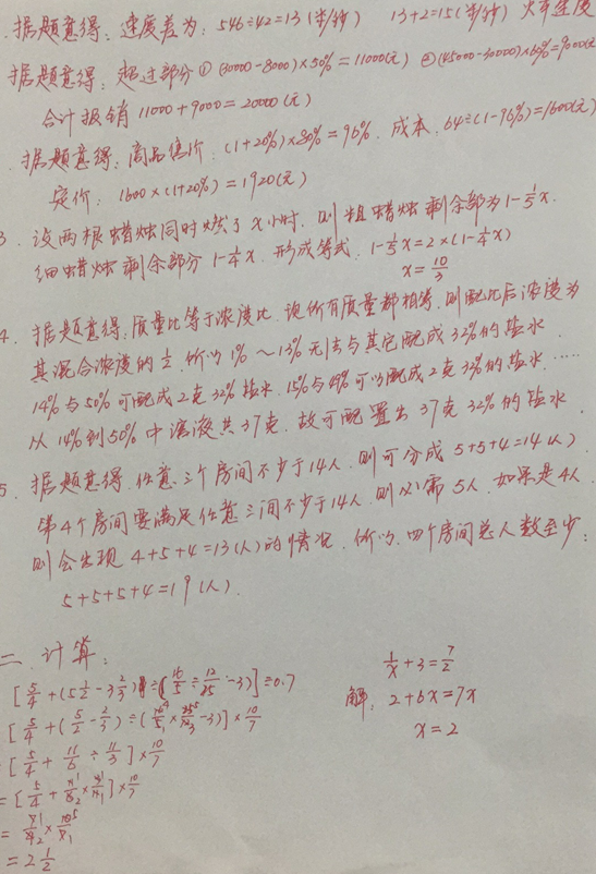 2018.2.27长沙中雅培粹小升初数学试卷答案(2)