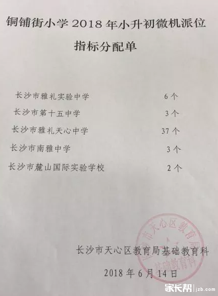 2018年长沙天心区铜铺街小学微机派位指标