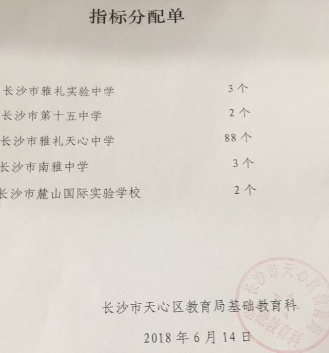 2018年长沙天心区一师一附小微机派位指标