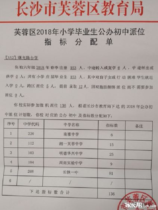 2018年长沙芙蓉区曙光路小学微机派位指标