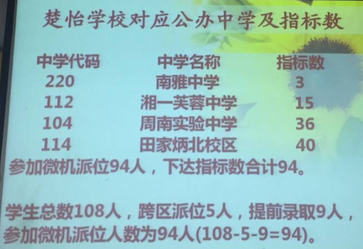 2018年长沙芙蓉区楚怡小学微机派位指标