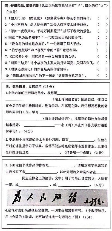 2018年长沙小学毕业考语文真题试卷(2)