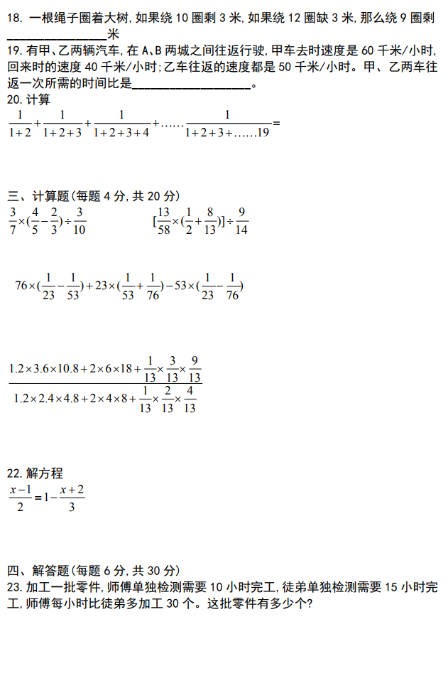 2018年长沙麓山国际初中入学数学真题(2)