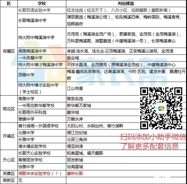 目前长沙城区的配套初中和配套楼盘有哪些?