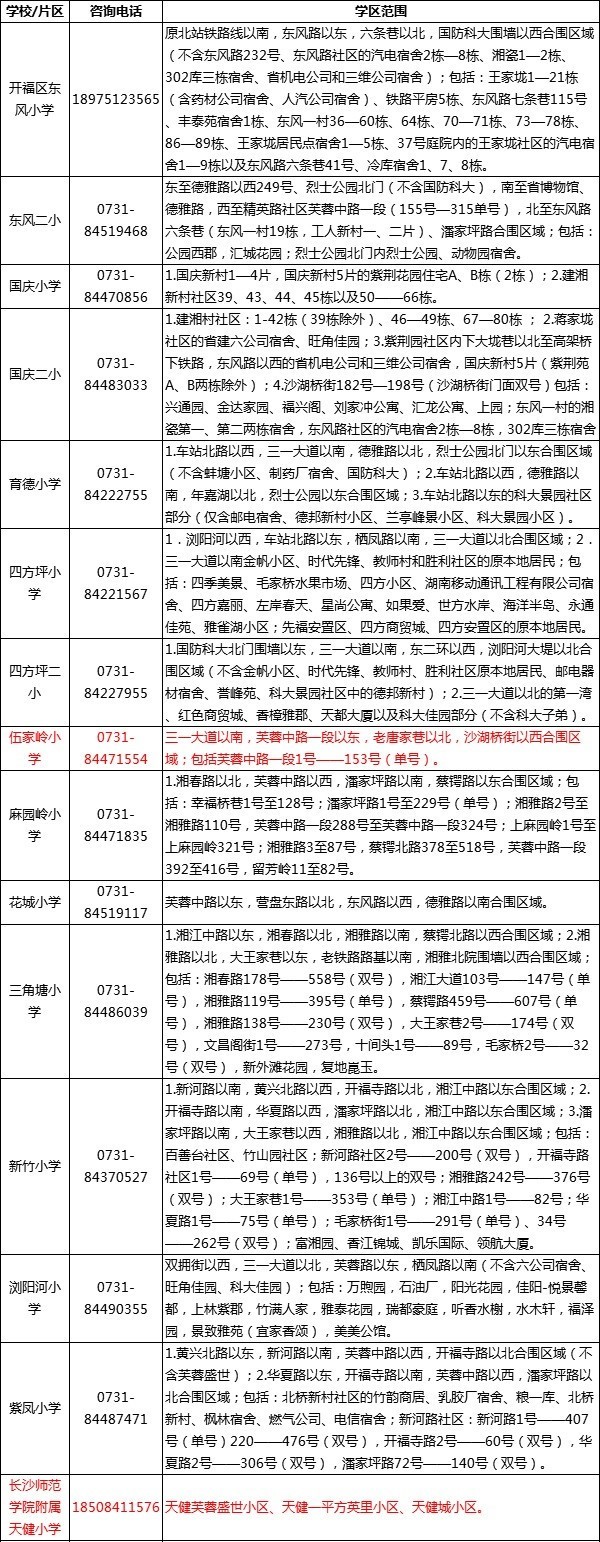 2019年长沙城区公办小学学区范围及覆盖具体楼盘信息目前已公布!
