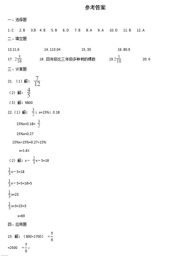 2019-2020年长沙市小升初数学真题卷三(答案版)