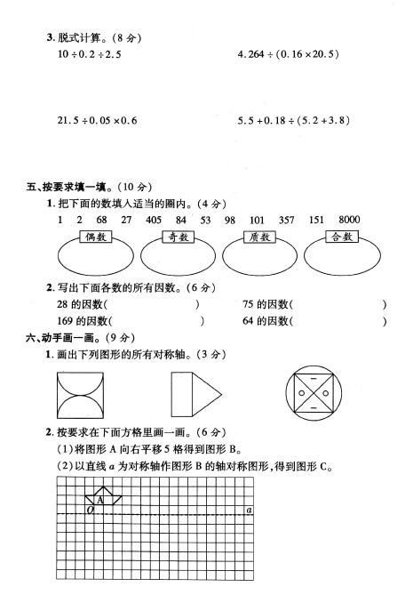 新课标版五年级上册数学期中考试卷三(图片版)(3)