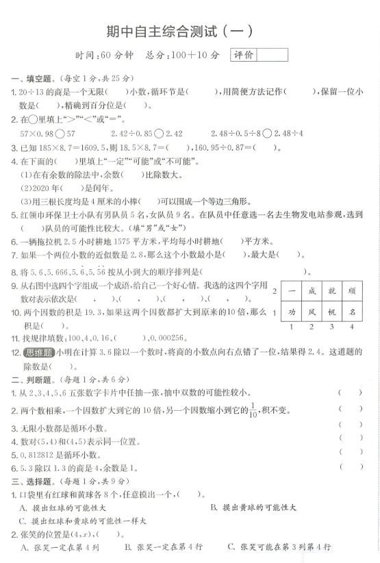 2024年人教版五年级上册数学期中测试卷(图片版) 网络整理 2024-10-28 20:55:52 奥数网整理了关于2024年人教版五年级上册数学期中测试卷(图片版),希望对同学们有所帮助,仅供参考。 首页 上一页 下一页 尾页