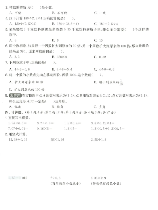 2024年人教版五年级上册数学期中测试卷(图片版)(2)