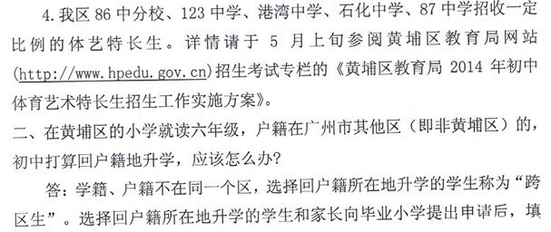 广州奥数网:日前,广州市黄埔区教育局公布了2014年黄埔区小升初招生问答,详情如下所示: