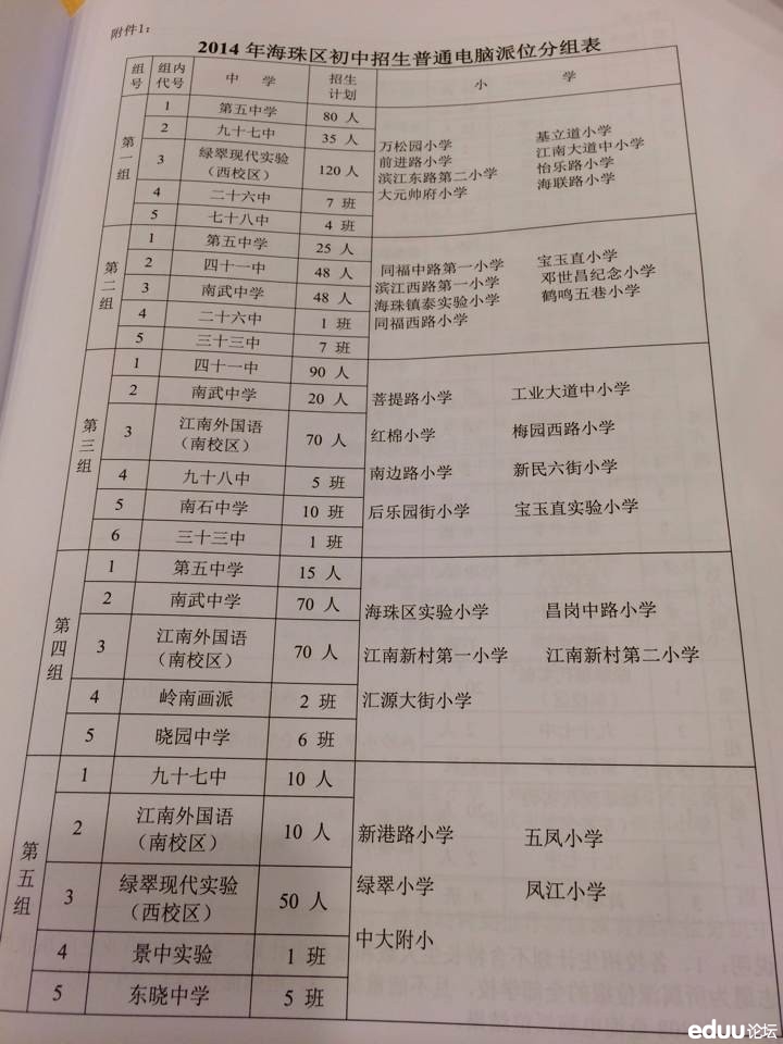 先上一张今年的派位表,海珠电脑派位2派的;以第三组为依据;