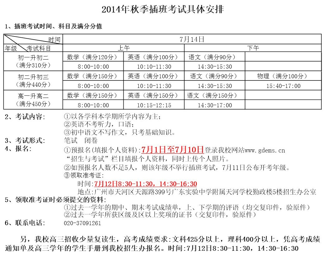 【查看原帖并参与讨论:2014年省实天河小升初插班生考试安排】