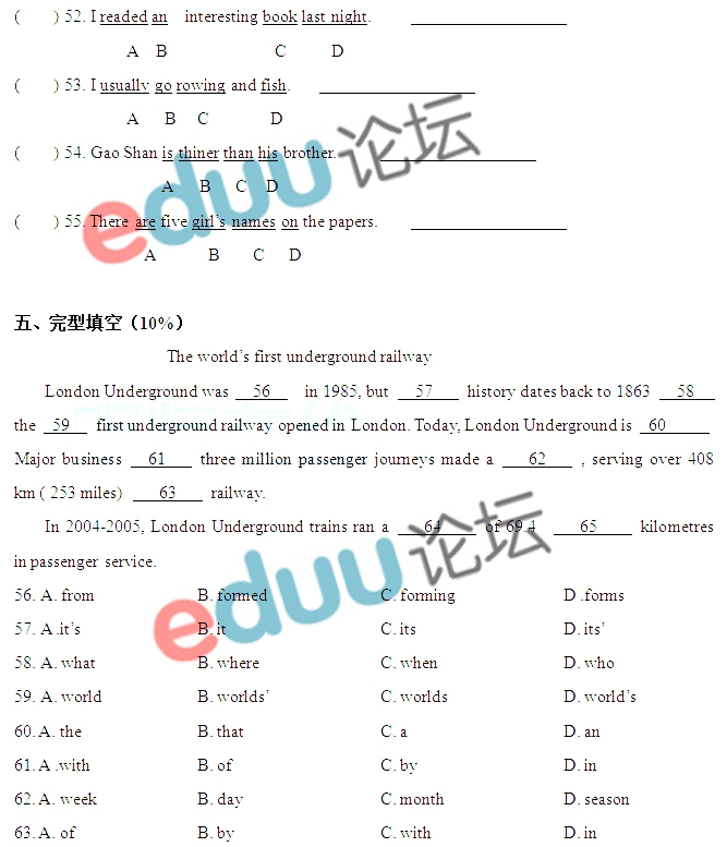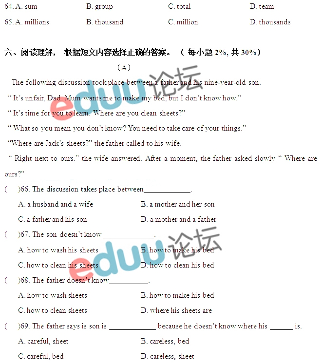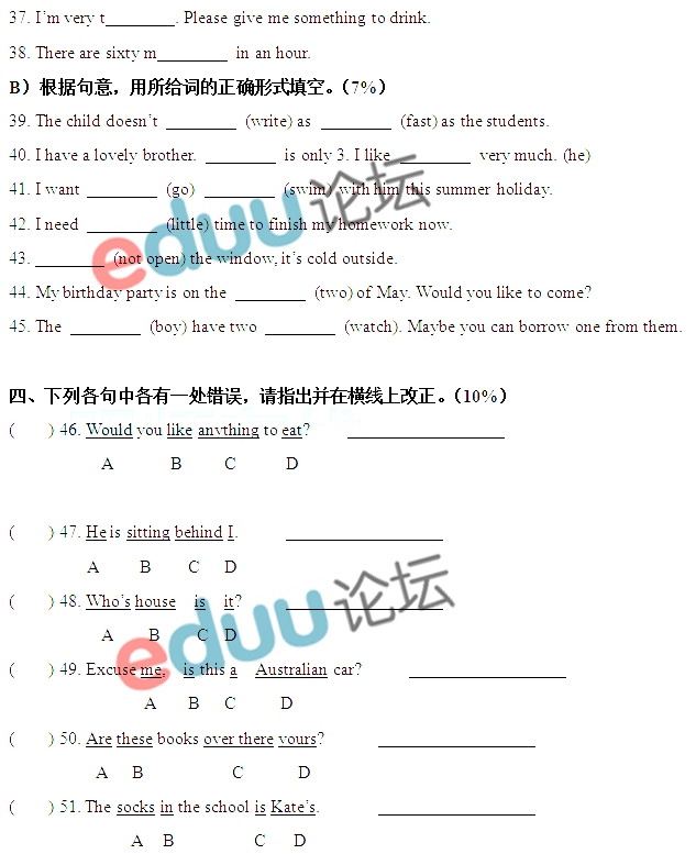 2014年广州小升初育才实验入学考试真题(英语)(2)