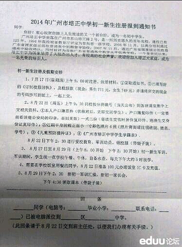 【查看原帖并参与讨论:2014年广州市培正中学初一新生注册报到通知书】