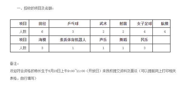 广州市第十七中学2015年初中特长生招生组织方案